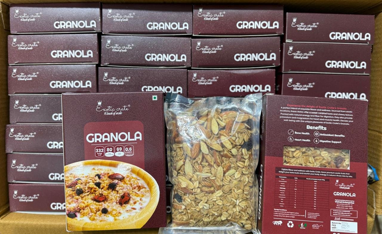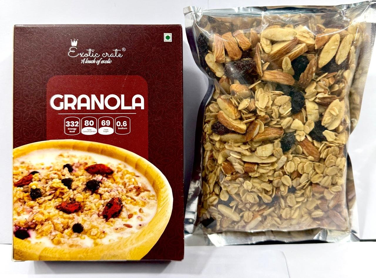 Crunchy, wholesome, and naturally delicious, Granola is a perfect blend of rolled oats, nuts, seeds, and dried fruits – lightly baked for a golden crunch. Packed with fiber, protein, and essential nutrients, it’s a healthy choice for breakfast or snacking.