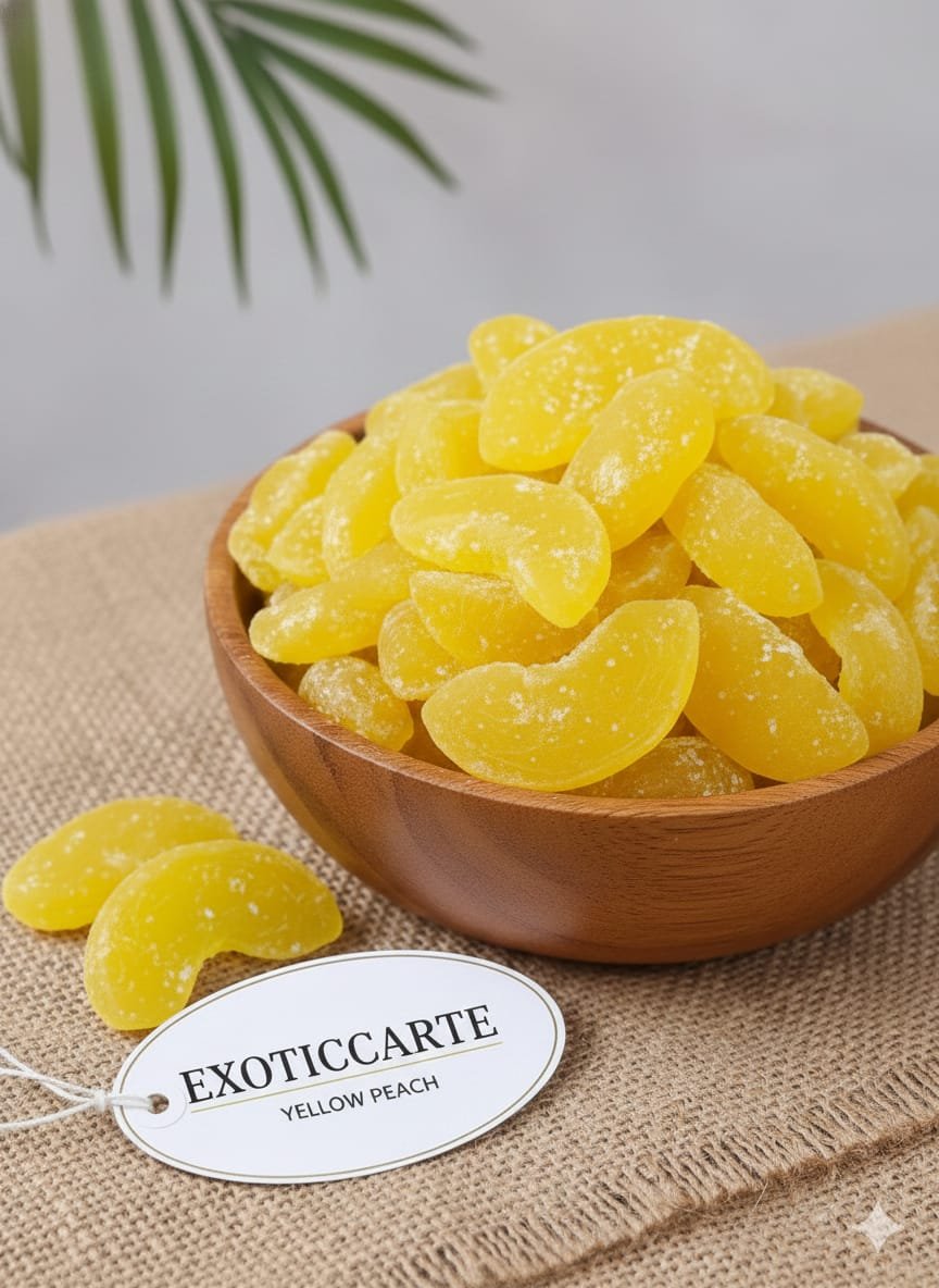 Dried Yellow Peach ek delicious aur premium quality dried fruit hai jo apne naturally sweet taste, soft-chewy texture aur attractive golden colour ke liye jaana jata hai. Carefully selected ripe yellow peaches ko hygienic drying process se prepare kiya jata hai, taaki unka natural flavour, aroma aur nutrition maximum level tak preserve rahe.
